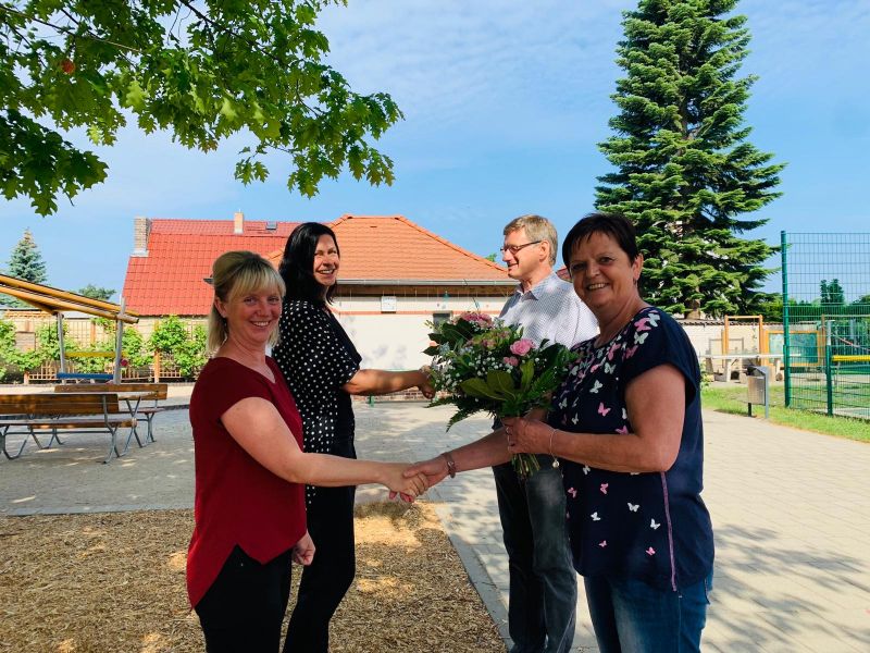 Am Freitag, 11.06.2021, wurde für die Kita Pfiffikus die neue Kita-Leitung berufen. Auch wenn Frau Nicole Schäfer schon seit längerer Zeit die Aufgabe als Leiterin der Kita übernommen hat, erfolgte mit der Überreichung eines Blumenstraußes nun die offizielle Funktionsübernahme. Frau Schäfer ist seit 01.01.2008 Erzieherin in der Kita.